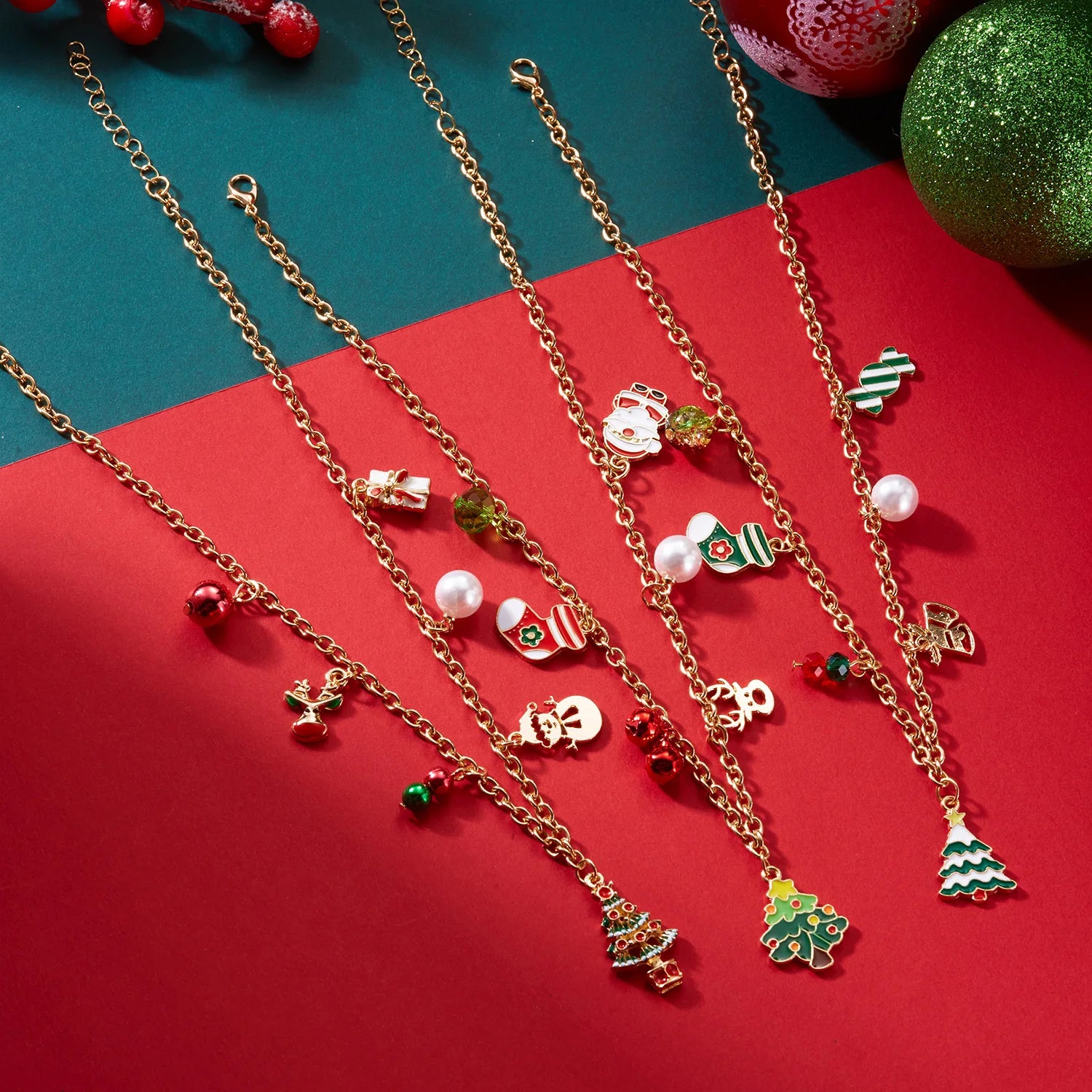 Cartoon Christmas Tree Bells Choker Necklace for Women Delicate Snowman Santa Claus Reindeer Chain Festival Party Jewelry Gifts