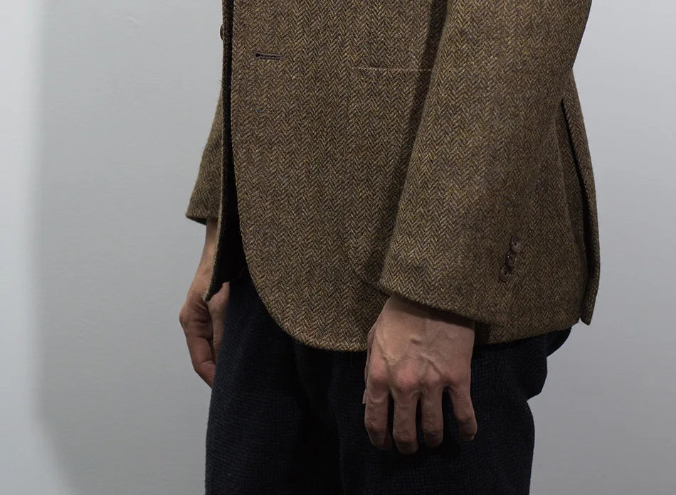 Men's Suit Herringbone Blazer Prom Tuxedos Wool Tweed Single Breasted Formal Bussiness/Wedding Jacket(Only Coat)