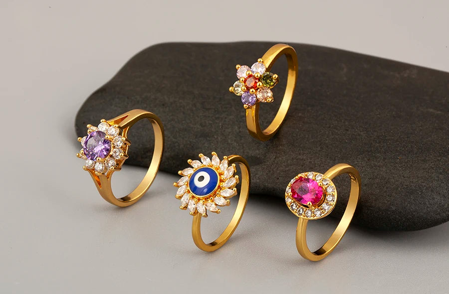 Nidin New Fashion 3 Styles Flower Shape Shiny Crystal Zircon Rings For Women Elegant Aesthetic Finger Jewelry Wedding Gifts