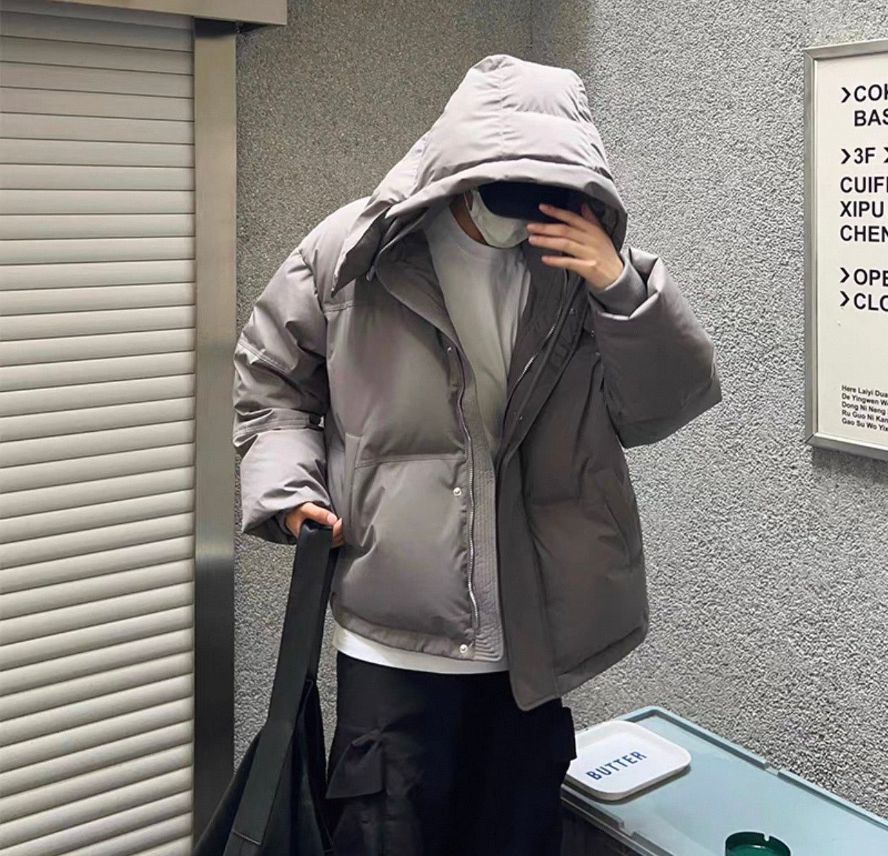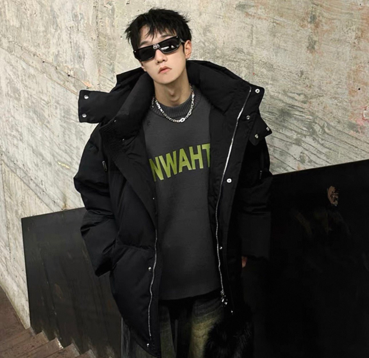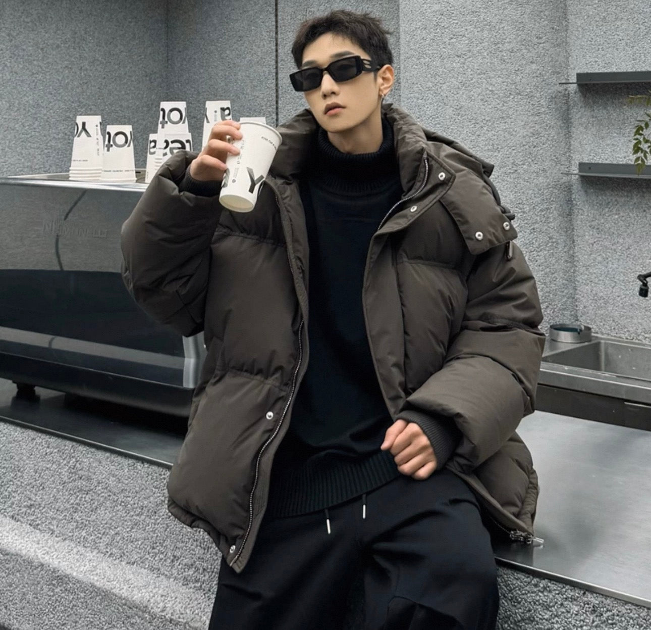 Trendy men's coat with high down filling, perfect for winter wear—keeps you warm in winter, and women can also wear it