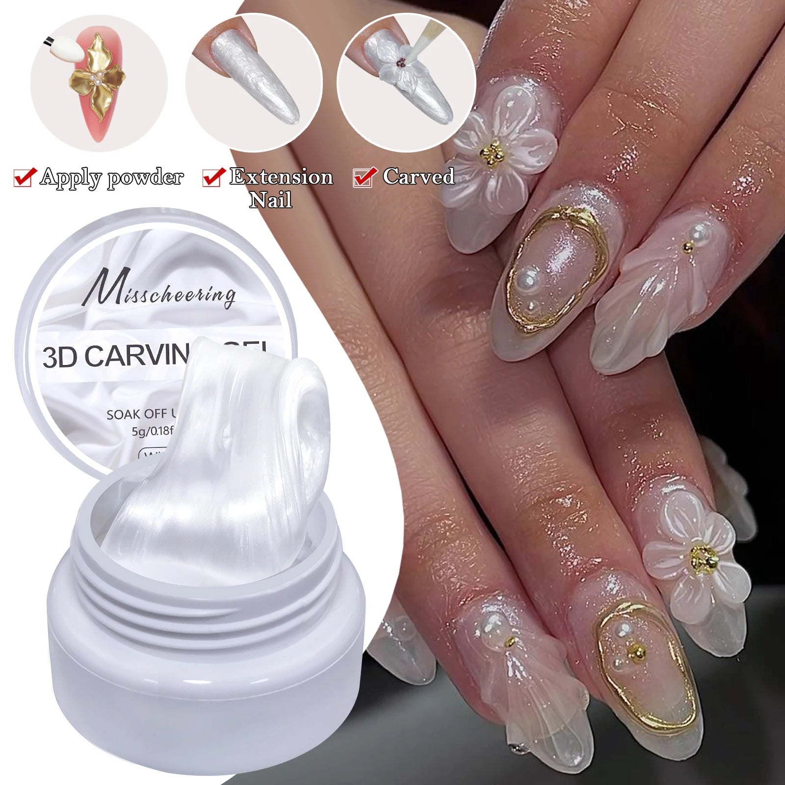 White pearlescent satin carving glue non-stick solid extension glue 3D carving flower acrylic gel varnish DIY nail art design